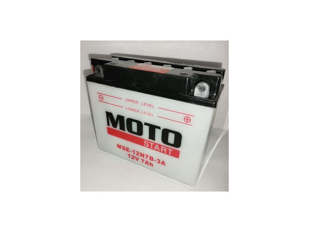 Motobatéria MOTOSTART MS-12N7B-3A. Výhradný dovozca spoločnosť MICRONIX, spol. s r.o. Motobatérie posielame suché prednabité. Po naplnení kyselinou akumulátorovou a ponechání cca 1 hodinu je kapacita batérie cca 70%.